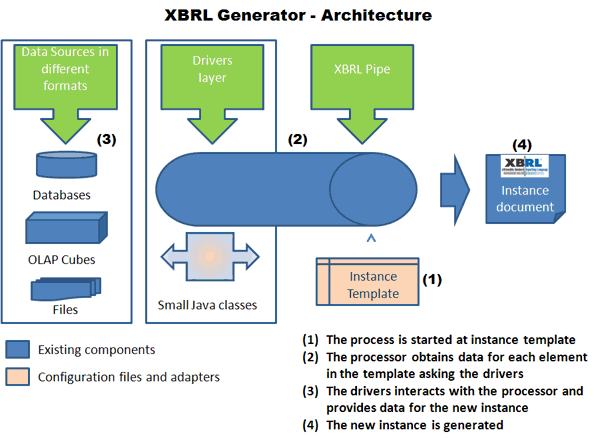 – Como Generador de informes XBRL: El mapeador accederá a datos que existen en repositorios de información y generará un informe XBRL.